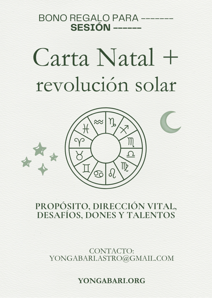Puede incluir espacios de meditación guiada y trabajo psico-somático. Incluye grabación de la sesión, tu mandala natal y un informe escrito bajo demanda.